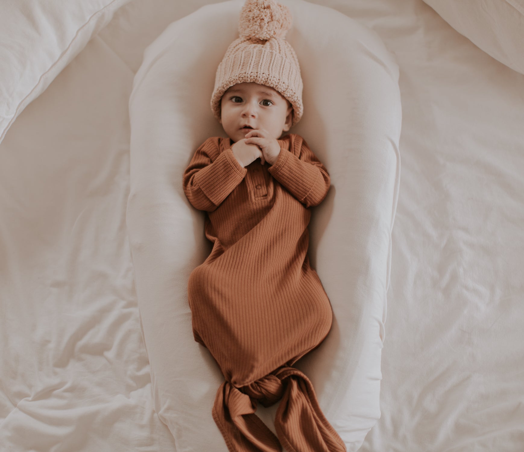 Our knotted gowns are the perfect baby basic ribbed to add to your collection. Milky soft for every season. Designed with a natural breathability of organic cotton, our knotted gowns will keep your little one cozy and comfortable in any weather. Its fuss-free design makes changing times a breeze.