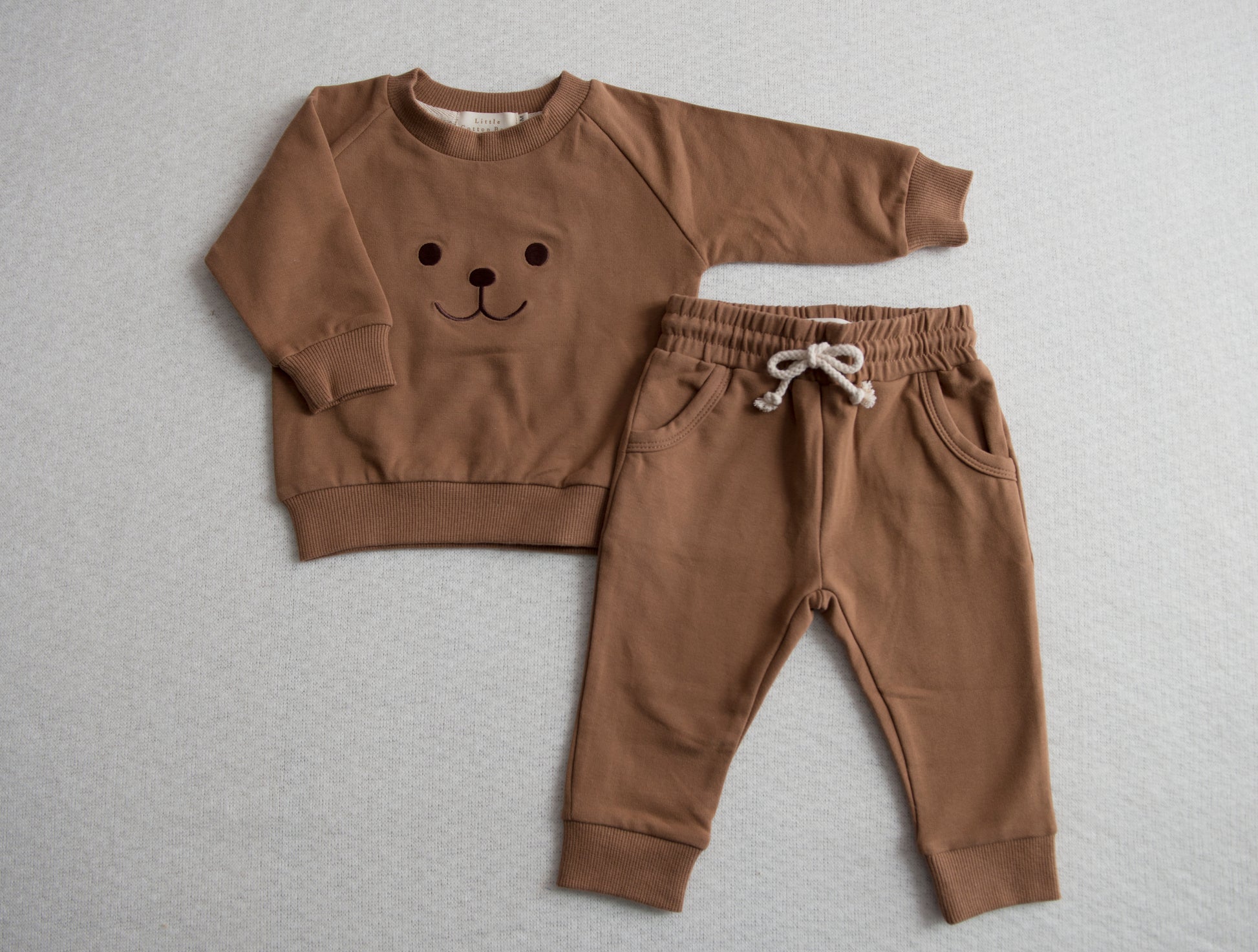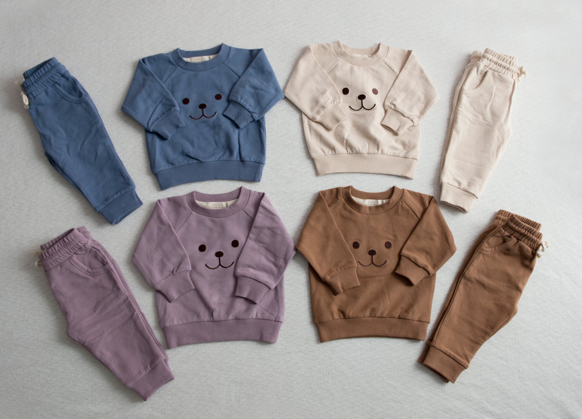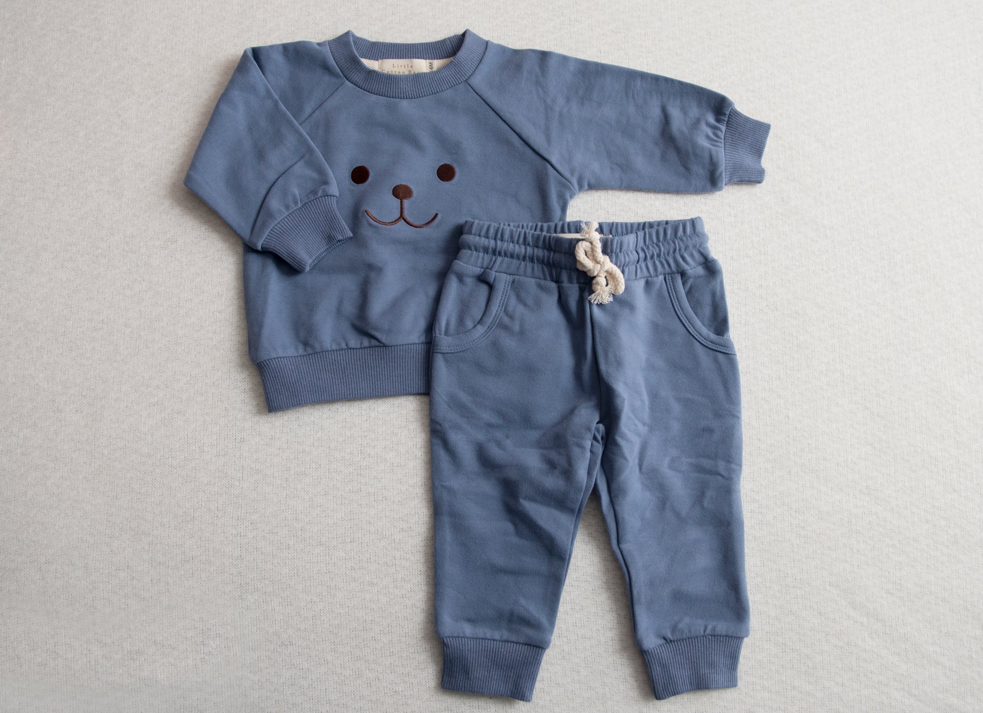 Our Porter sets are a 2 piece set with light weight sweater and pants, made from super soft oragnic cotton with the perfect amount of stretch. With an adjustable draw string waist allowing them to grow with your little one. real pockets to store all the things your little one collects throughtout the day.